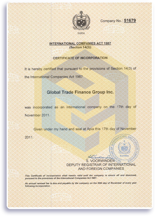 Global Trade Finance Group brand is registered in different jurisdictions.